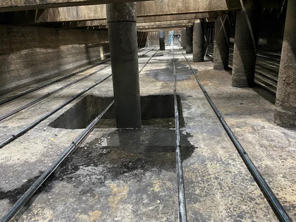 Manure cooling is a technique based on recovering heat from slurry stored in pig farms. A heat-transfer fluid circulates through a network of pipes installed at the bottom of the pre-pit, allowing heat exchange with the slurry. This system transfers the recovered heat to a heat pump connected to a hot water tank or a heating system, for example, to preheat the air in farrowing units. While the primary goal of this technique is to reduce energy consumption, it can also help reduce the environmental impact of pig farms, with French trials conducted by Ifip showing a 20% reduction in ammonia emissions and a 60% reduction in methane emissions. However, this technique is better suited to new buildings, as the pipe network must be embedded in the concrete slab of the pre-pit; installing it in existing buildings would significantly reduce the available storage volume of slurry within the facility.